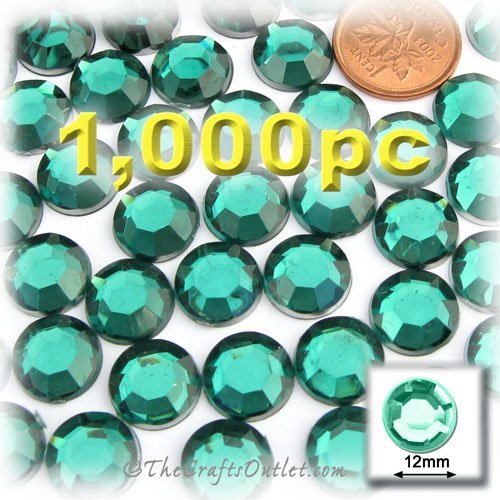 1,000pc Rhinestones crystals Round Shape made of Quality Acrylic sparkling with multi Facetted sides and flat top Emerald Green Gems Flatback with Silver Aluminum foil mirror backing size - 12mm about Buy these rhinestones and embellish a variety of crafts projects. You can add these Acrylic facetted rhinestones to many projectsAdd gemstones to Baby Keepsake items Blitz your nails with rhinestones Highlight your scrapbook memory pages with these colourful jewels Dazzle your picture frames and ma