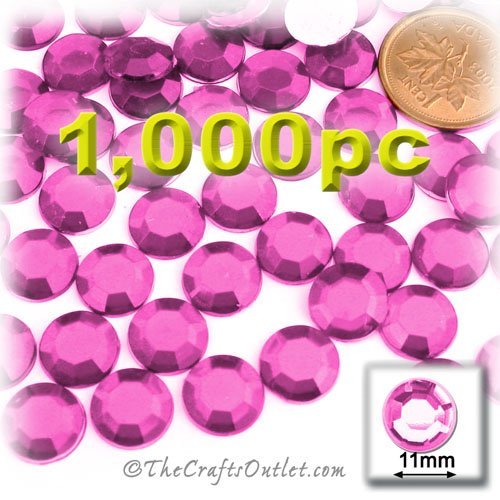 1,000pc Rhinestones crystals Round Shape made of Quality Acrylic sparkling with multi Facetted sides and flat top Hot Pink or Rose Gems Flatback with Silver Aluminum foil mirror backing size - 11mm about Buy these rhinestones and embellish a variety of crafts projects. You can add these Acrylic facetted rhinestones to many projectsAdd gemstones to Baby Keepsake items Blitz your nails with rhinestones Highlight your scrapbook memory pages with these colourful jewels Dazzle your picture frames and
