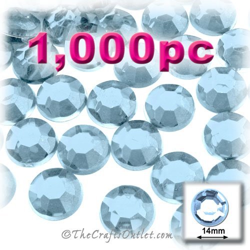 1,000pc Rhinestones crystals Round Shape made of Quality Acrylic sparkling with multi Facetted sides and flat top Light Blue Gems Flatback with Silver Aluminum foil mirror backing size - 14mm about Buy these rhinestones and embellish a variety of crafts projects. You can add these Acrylic facetted rhinestones to many projectsAdd gemstones to Baby Keepsake items Blitz your nails with rhinestones Highlight your scrapbook memory pages with these colourful jewels Dazzle your picture frames and make