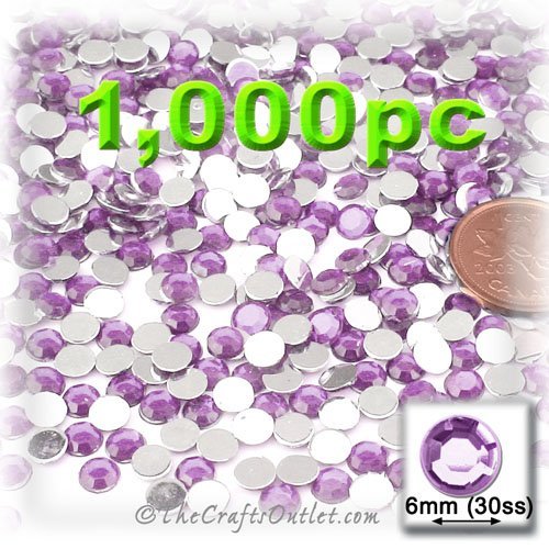 1,000pc Rhinestones crystals Round Shape made of Quality Acrylic sparkling with multi Facetted sides and flat top Lavender Light Purple Gems Flatback with Silver Aluminum foil mirror backing size - 6mm about Buy these rhinestones and embellish a variety of crafts projects. You can add these Acrylic facetted rhinestones to many projectsAdd gemstones to Baby Keepsake items Blitz your nails with rhinestones Highlight your scrapbook memory pages with these colourful jewels Dazzle your picture frames