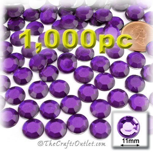 1,000pc Rhinestones Round Shape made of Quality Acrylic sparkling with multi Facetted sides and flat top Purple Gems Flatback with Silver Aluminum foil mirror backing size - 11mm about Buy these rhinestones and embellish a variety of crafts projects. You can add these Acrylic facetted rhinestones to many projectsAdd gemstones to Baby Keepsake items Blitz your nails with rhinestones Highlight your scrapbook memory pages with these colourful jewels Dazzle your picture frames and make unique memori