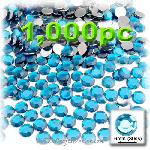 1,000pc Rhinestones crystals Round Shape made of Quality Acrylic sparkling with multi Facetted sides and flat top Aqua Blue Gems Flatback with Silver Aluminum foil mirror backing size - 6mm about Buy these rhinestones and embellish a variety of crafts projects. You can add these Acrylic facetted rhinestones to many projectsAdd gemstones to Baby Keepsake items Blitz your nails with rhinestones Highlight your scrapbook memory pages with these colourful jewels Dazzle your picture frames and make un
