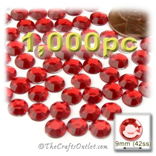 1,000pc Rhinestones crystals Round Shape made of Quality Acrylic sparkling with multi Facetted sides and flat top Ruby Red Gems Flatback with Silver Aluminum foil mirror backing size - 9mm about Buy these rhinestones and embellish a variety of crafts projects. You can add these Acrylic facetted rhinestones to many projectsAdd gemstones to Baby Keepsake items Blitz your nails with rhinestones Highlight your scrapbook memory pages with these colourful jewels Dazzle your picture frames and make uni