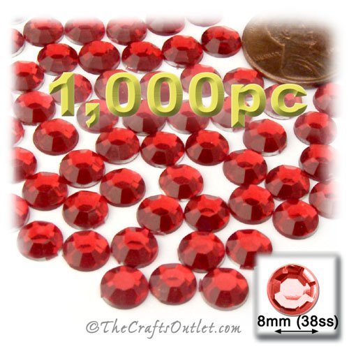 1,000pc Rhinestones crystals Round Shape made of Quality Acrylic sparkling with multi Facetted sides and flat top Ruby Red Gems Flatback with Silver Aluminum foil mirror backing size - 8mm about Buy these rhinestones and embellish a variety of crafts projects. You can add these Acrylic facetted rhinestones to many projectsAdd gemstones to Baby Keepsake items Blitz your nails with rhinestones Highlight your scrapbook memory pages with these colourful jewels Dazzle your picture frames and make uni