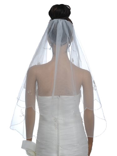 A fabulous look will be achieved by this tulle veil to compliment your stylish wedding gown. Beading detail accents the scalloped edge, while sequin adorns the main body in flower shape. This elbow length style in two tiers offers a touch of romance effortlessly.